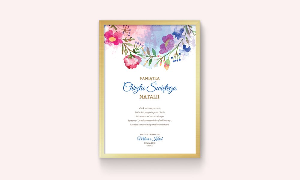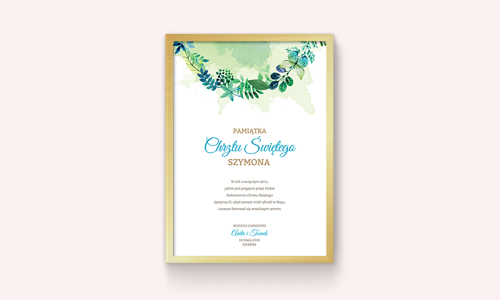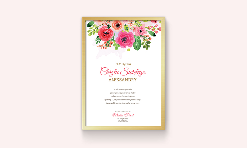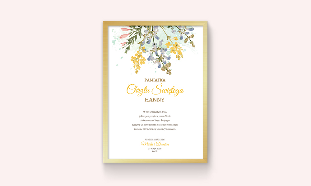 Niebanalny, spersonalizowany plakat z dedykacją od rodziców chrzestnych czy dziadków będzie pamiątką tego dnia.