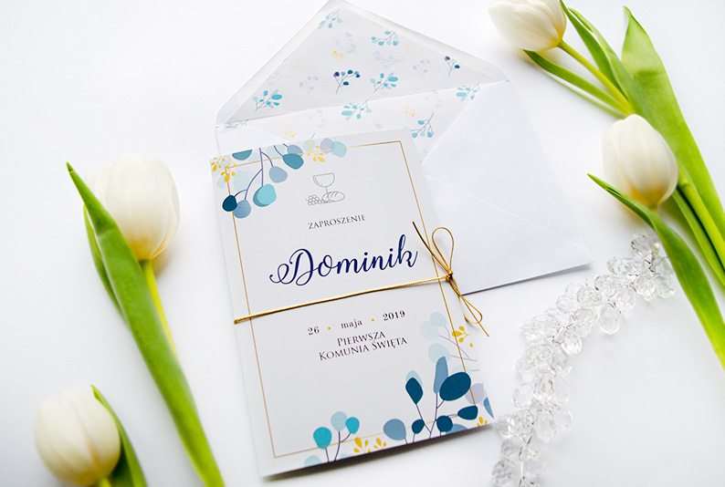 -wklejana wkładka z motywem dopadowanym do zaproszenia komunijnego Błękit