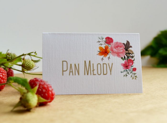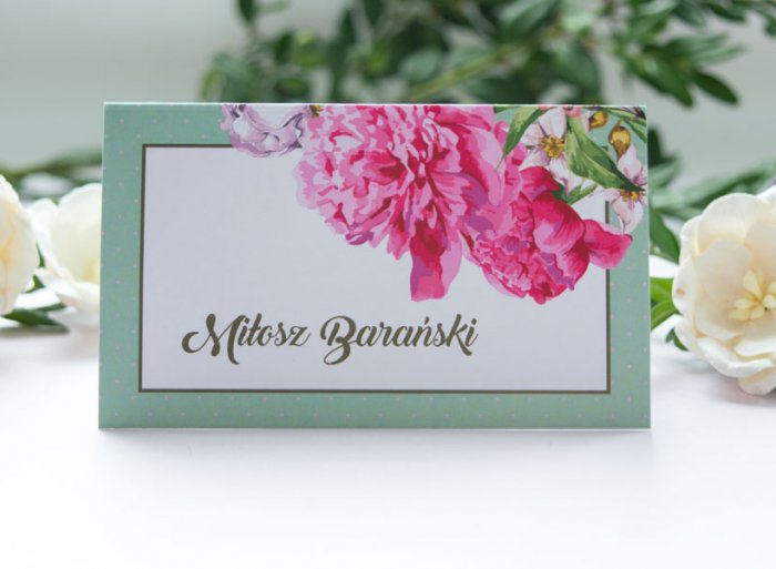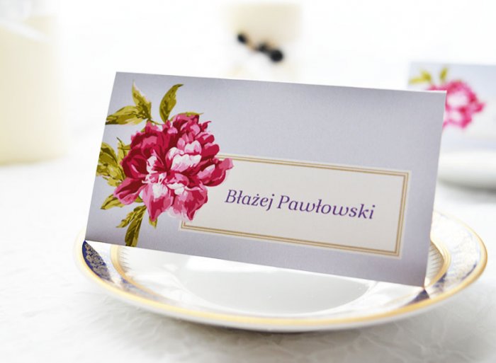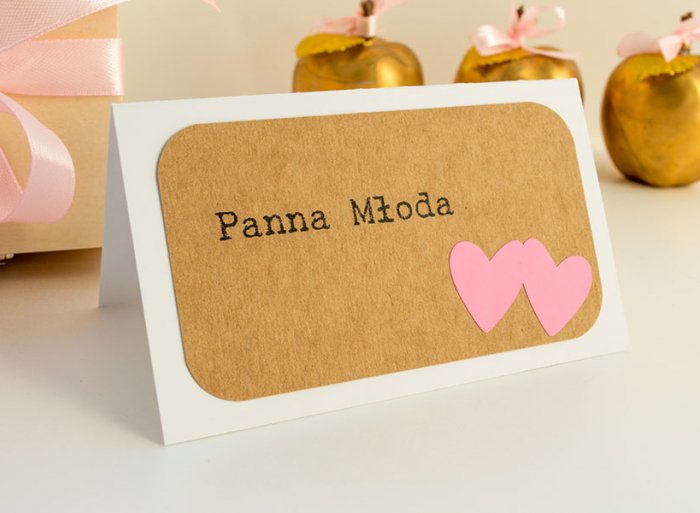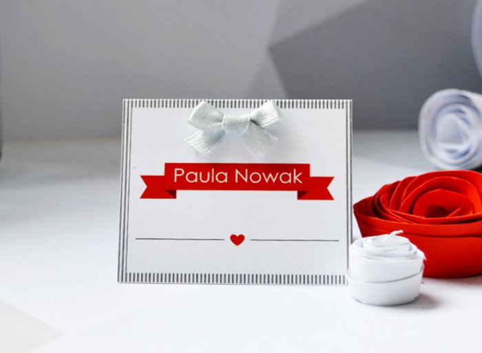 Winietka- mała karteczka pasująca stylistyką do pozostałych elementów papeterii ślubnej.