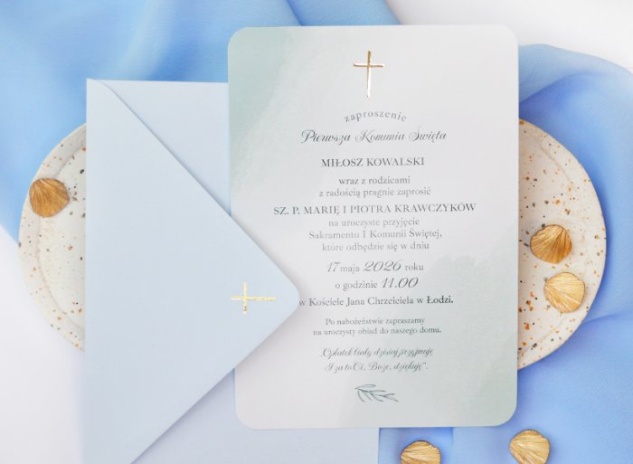 Zaproszenie Komunia Pastel Mist