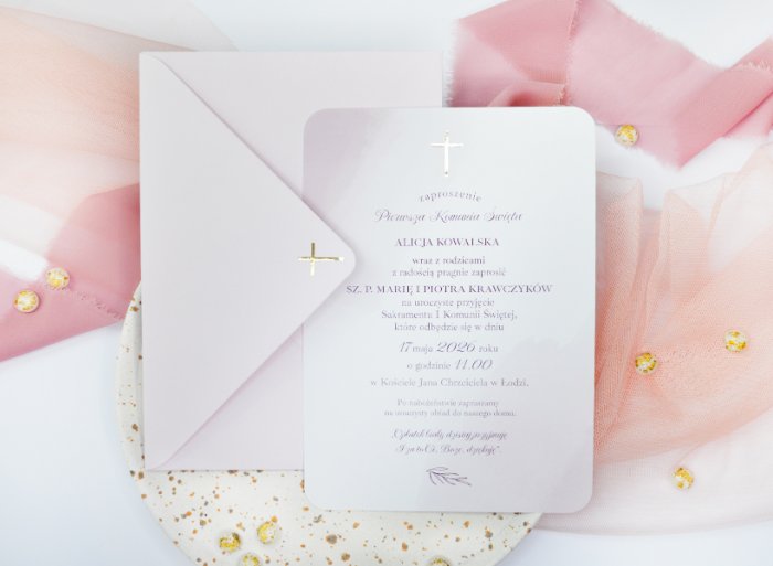 Zaproszenie Komunia Pastel Pink