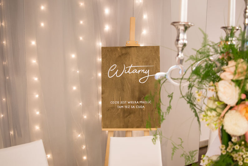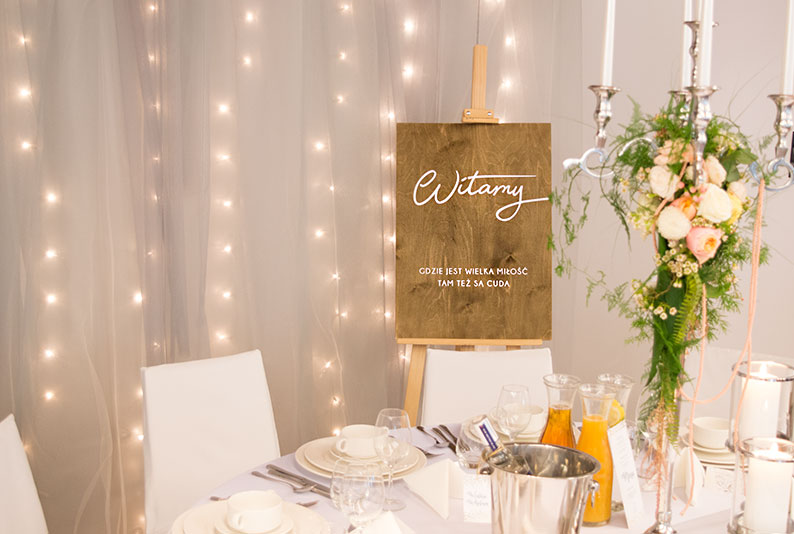Minimalistyczna i naturalna ozdoba uroczystości weselnej w stylu rustykalnym.