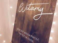 Biały napis świetnie komponuje się z rustykalnym odcieniem brązu .