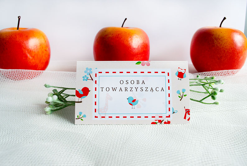 Dobrym pomysłem jest aby cała papateria była spójna - zaproszenia, podziękowania dla gości i winietki.