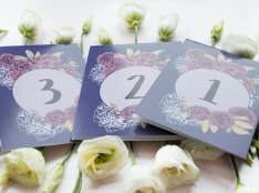 Tabliczki z numeracja stolików powinny być dostosowane stylistycznie do wystroju sali weselnej.