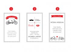 Zawieszki ozdobione srebrna , atłasową kokardką i z ciekawa grafiką to wybór dla osób ceniących sobie oryginalność.