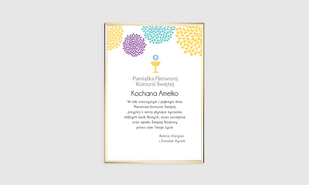 Imienny obrazek komunijny będzie przypominał piękny dzień Pierwszej Komunii.