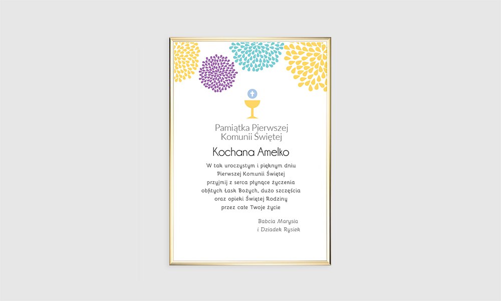 Pamiątka z okazji przyjęcia Sakramentu Pierwszej Komunii Świętej.