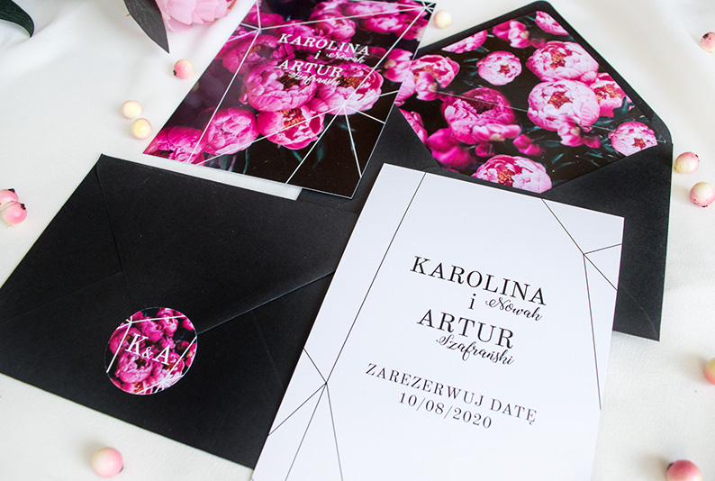 Informacja: tła ozdobne do wkładek kopert są wykonane z zachowaniem motywu i kolorystyki pasującego do danego wzoru zaproszenia
