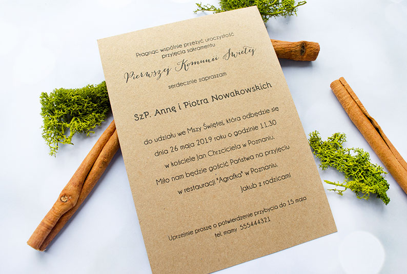 zaproszenie komunijne Rustic: