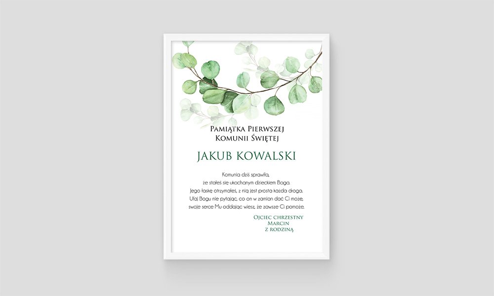Imienny obrazek komunijny będzie przypominał piękny dzień Pierwszej Komunii.