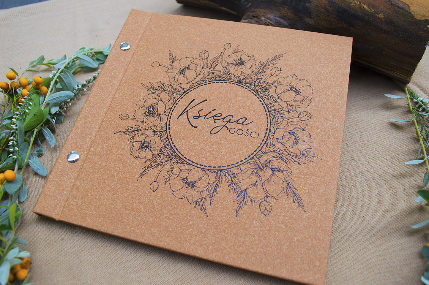 oprawa twarda wykonana z naturalnej okleiny papierowej świetnie pasującej do rustykalnej stylistyki