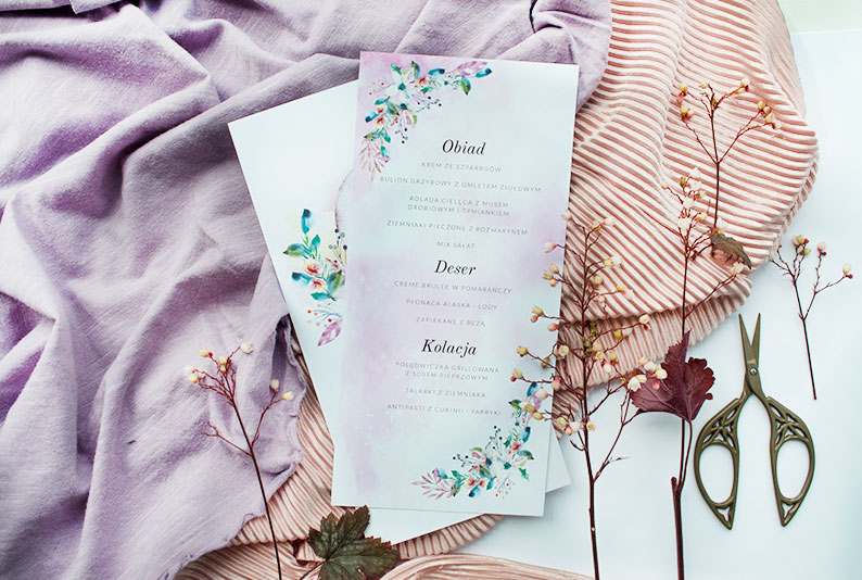 Dzięki kartom menu Goście będą mogli zapoznać się nie tylko ze spisem serwowanych potraw, ale również z przebiegiem przyjęcia.