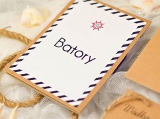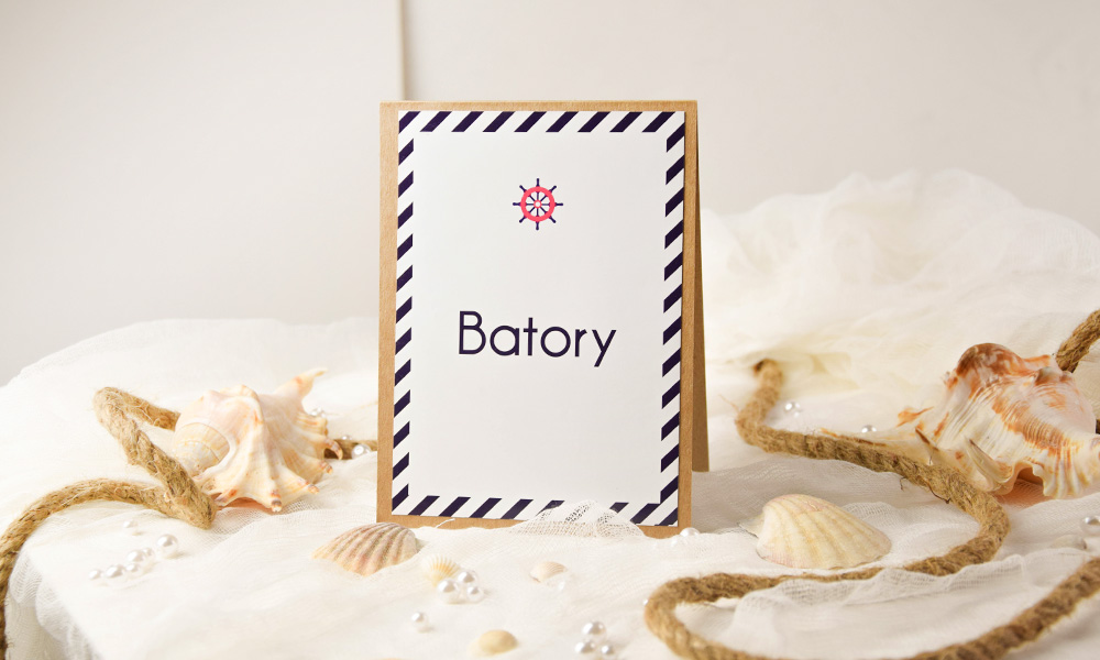 Numery stołów w postaci stojących karteczek z zadrukiem dwustronnym.