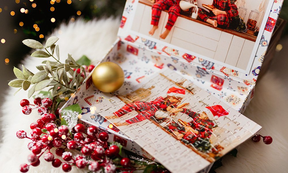 Fotopuzzle ze zdjęciem w świątecznym pudełku :