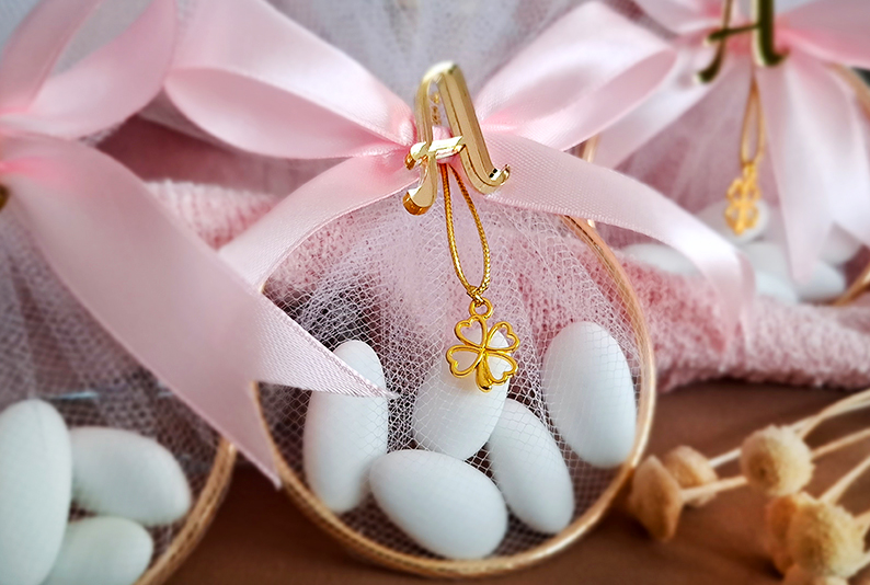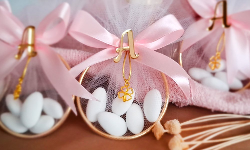 My proponujemy słodkie podziękowanie - migdały, pięknie opakowane w złotą obręcz, delikatny tiul i dopasowane dodatki.