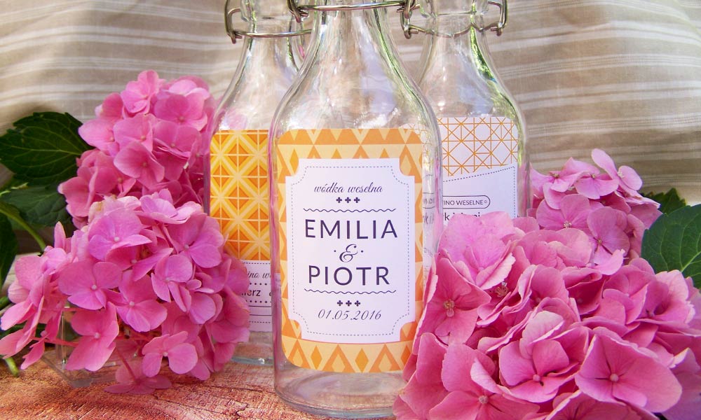 Prezentujemy samoprzylepne, personalizowane etykiety na napoje weselne - wino, wódkę weselną .