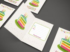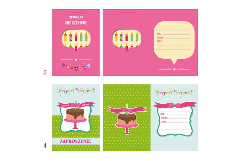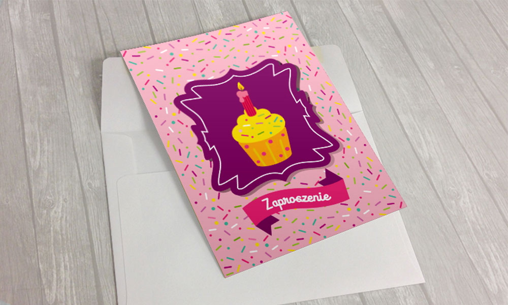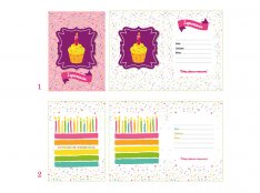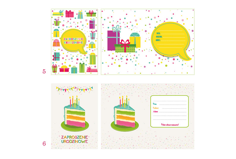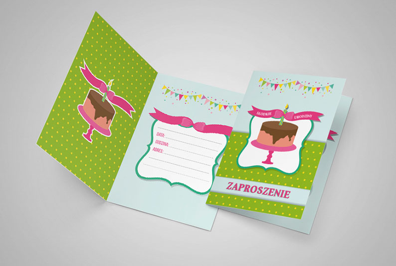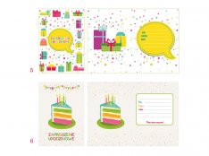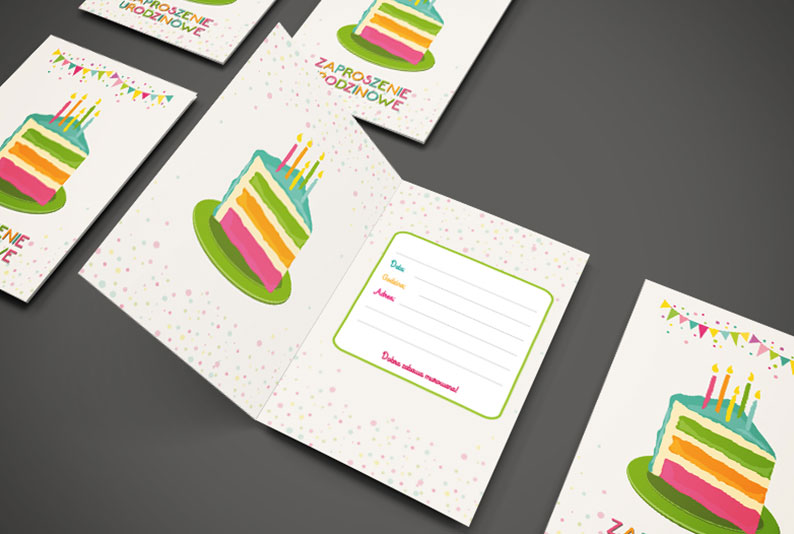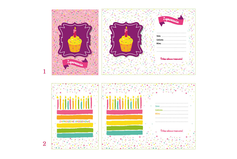 Kolorowe, lekkie w formie zaproszenia urodzinowe z motywami ciasteczek.