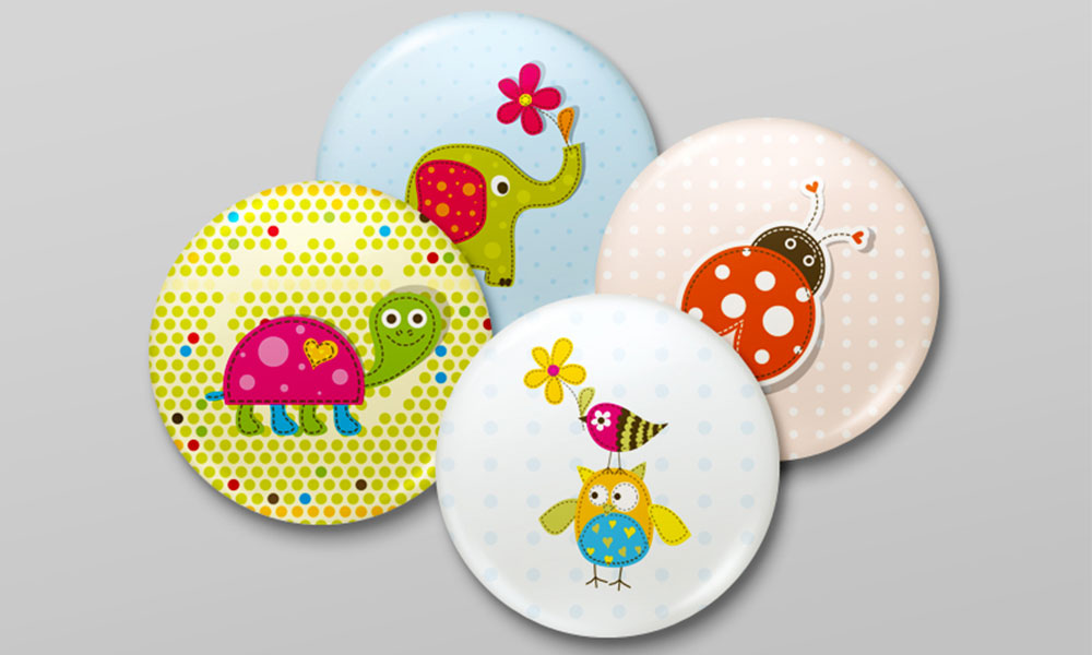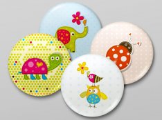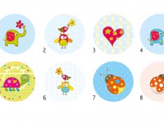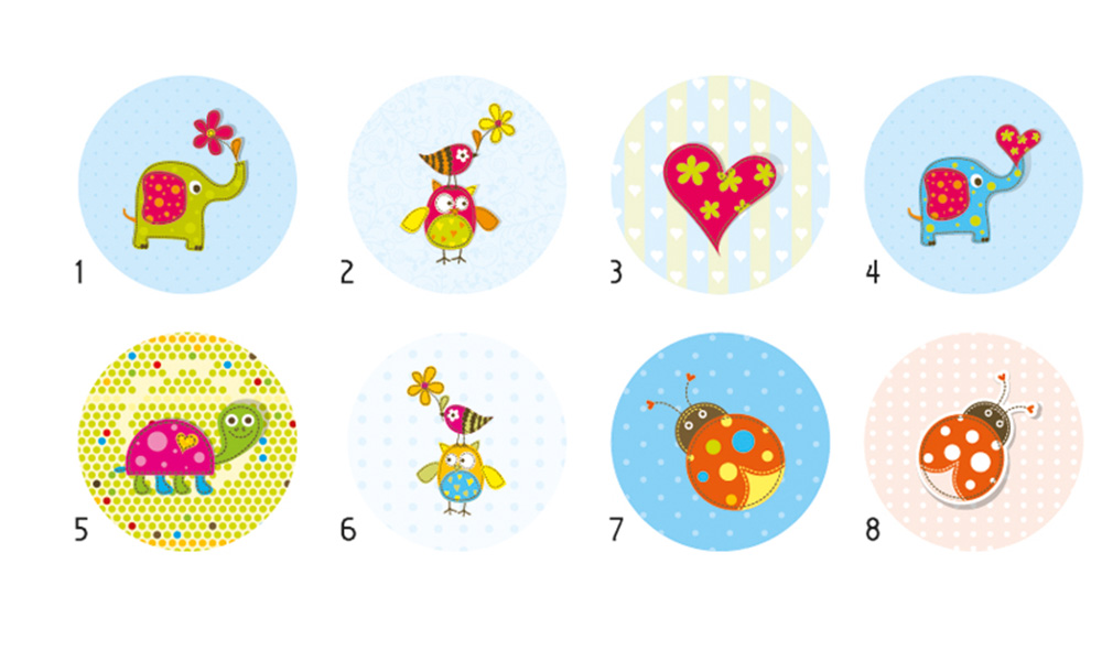 Motyw przewodni tokolorowe zwierzątka w bajkowej scenerii.