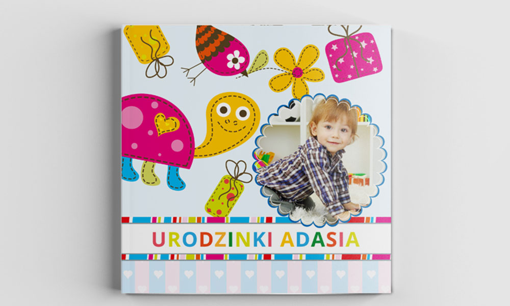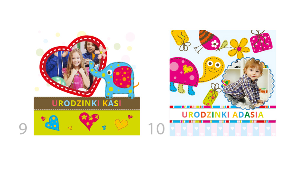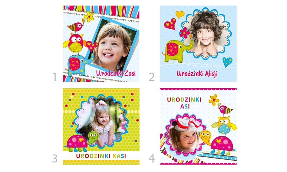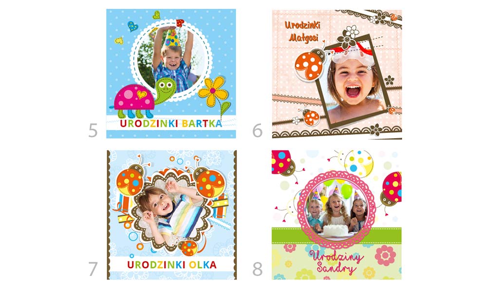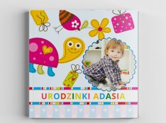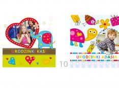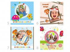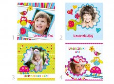 Kolorowe zaproszenia na roczek, urodzinki ze zdjęciem i pamiątkową przypinką