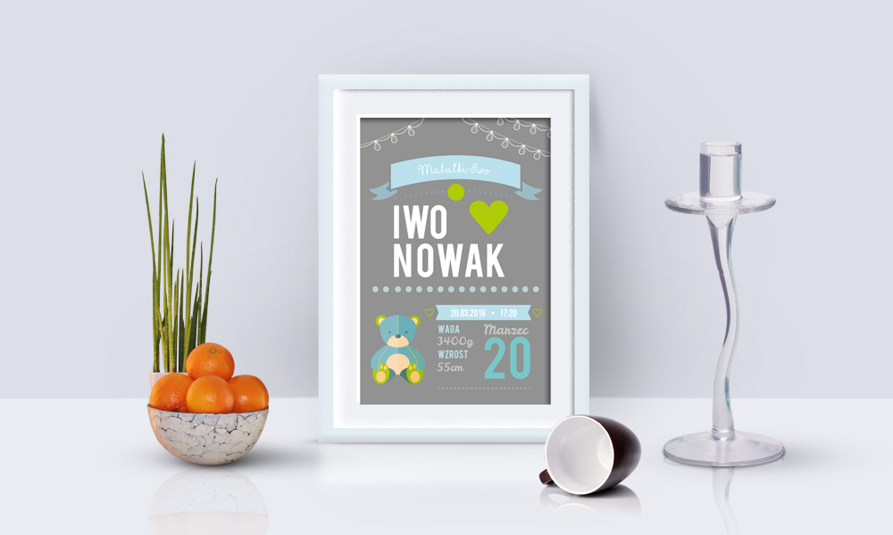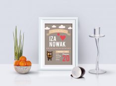 Metryczka dla dzieci to wyjątkowa forma pamiątki, która zawiera dane urodzenia dziecka tj. imię i nazwisko, datę urodzenia, wagę, długość, godzinę urodzenia oraz często również imiona rodziców.