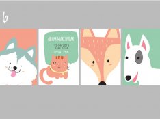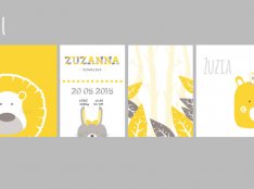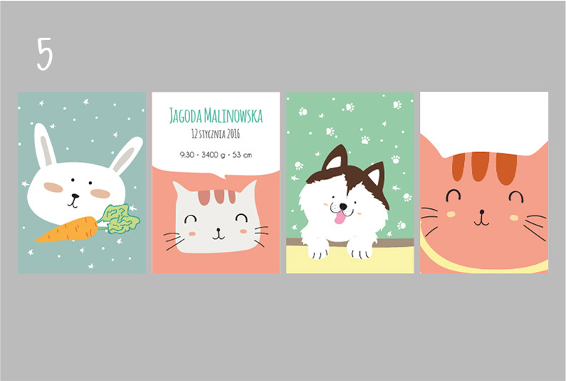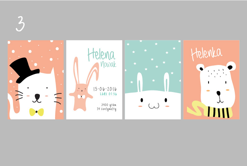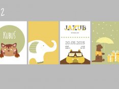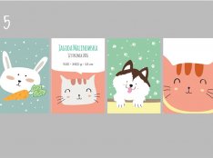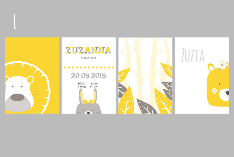 Plakaty wraz z metryczką, w tej samej stylistyce i gamie kolorystycznej.