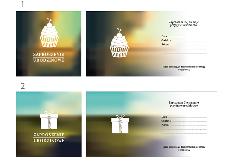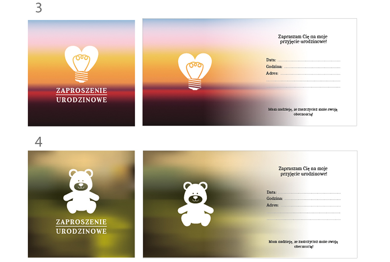 treść i grafika zaproszenia okładka: niezmienna; dwie wersje graficzne