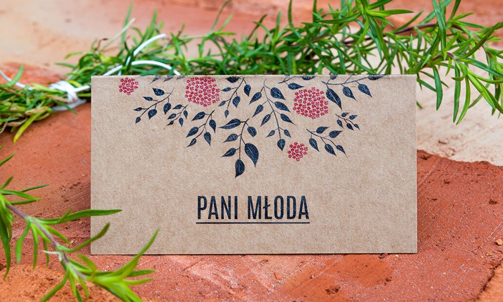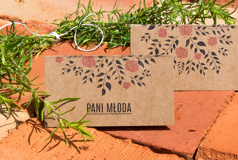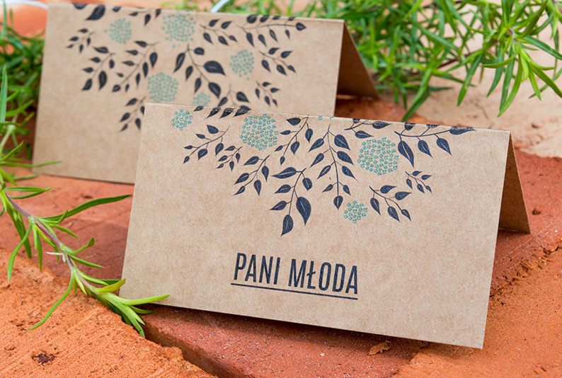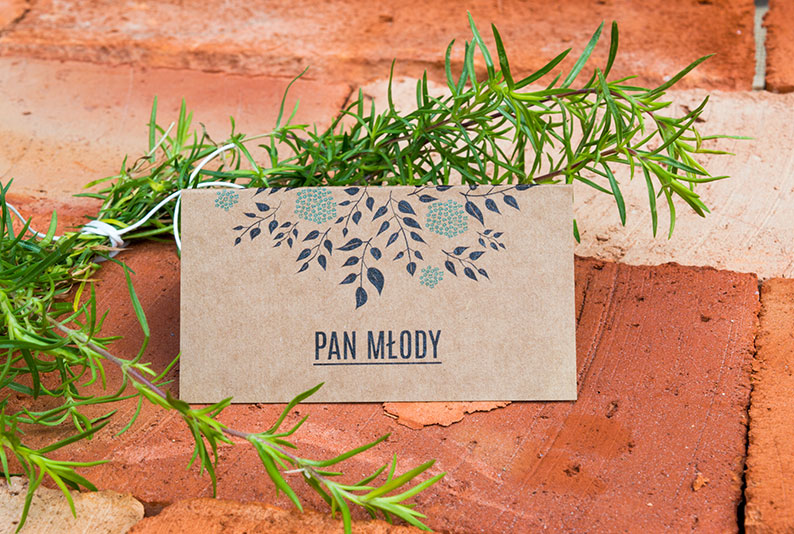 Do zaproszeń Eko przygotowaliśmy pasujące winietki dla zaproszonych weselników.