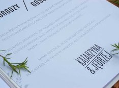 Zapraszamy do obejrzenia nowoczesnych zaproszeń z kolekcji Botanica i stworzonych dodatków weselnych: zawieszki, winietki, menu.