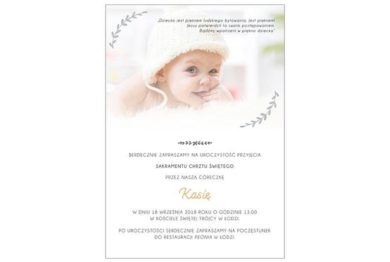Prześlij do nas zdjęcie a my przygotujemy indywidualny projekt zaproszenia na chrzest święty.