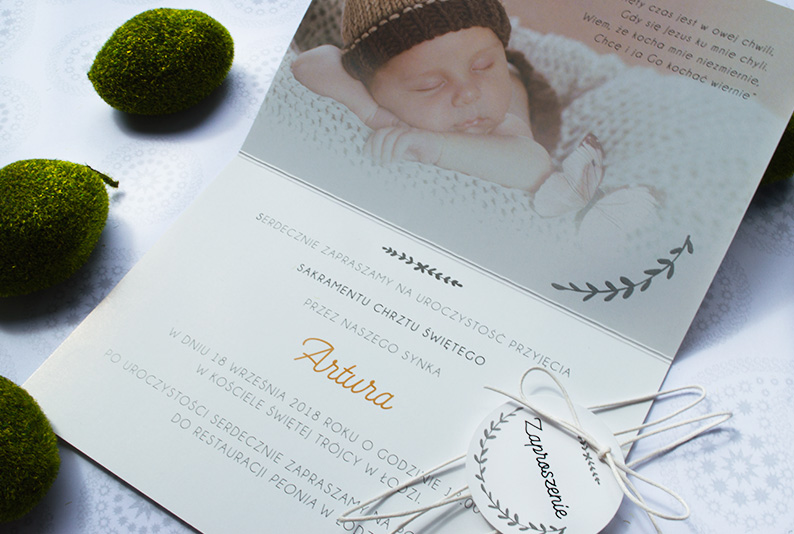 Zaprojektowane przez nas zaproszenia ze zdjęciem Twojego dziecka są eleganckie, delikatne i oryginalne.