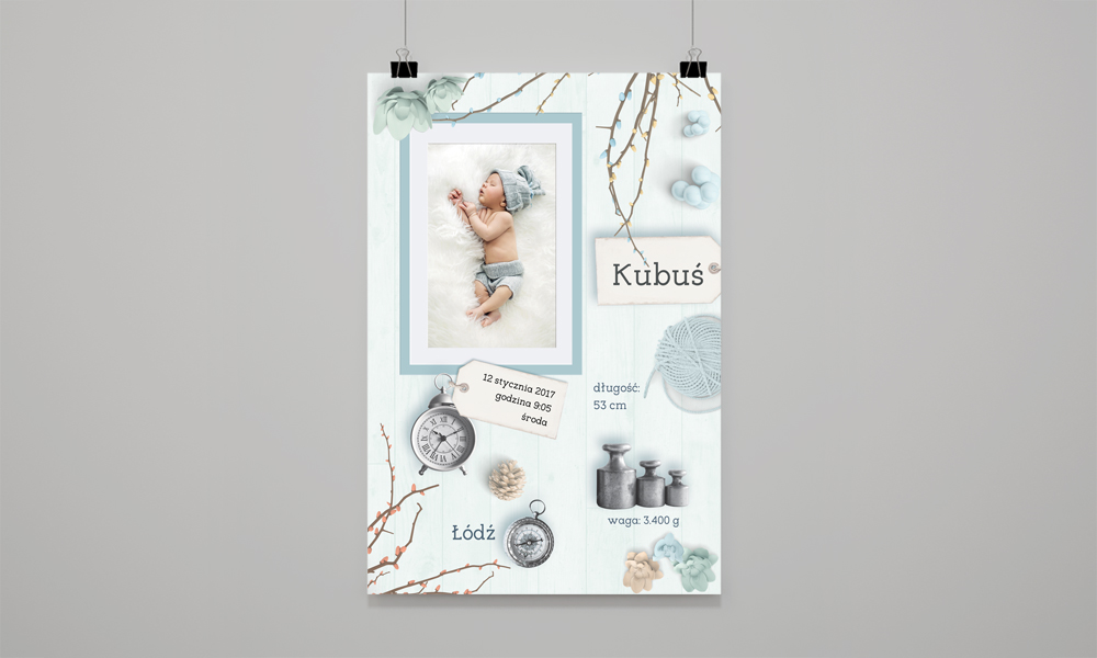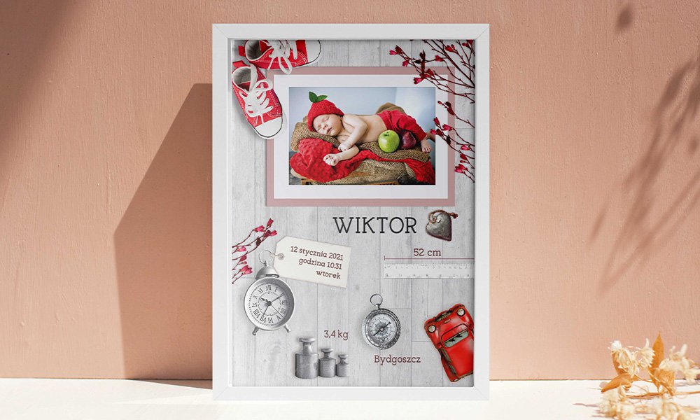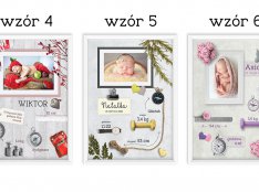 Nowoczesny styl; ciekawa grafika i lekka forma to cechy naszej metryczki ze zdjęciem.