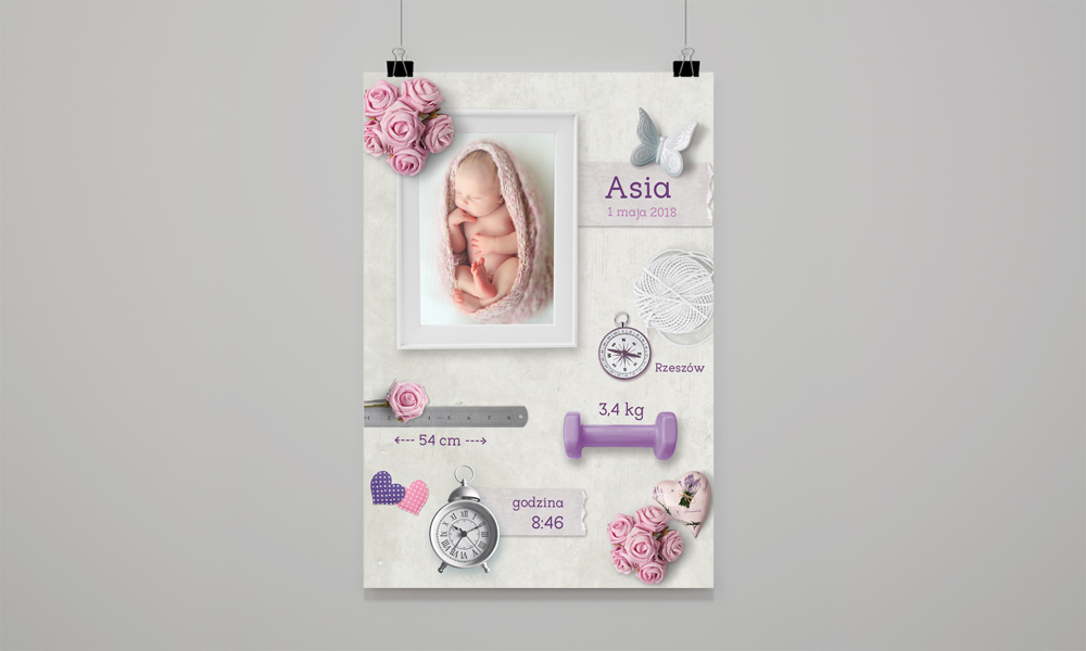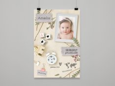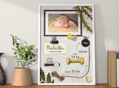 Metryczka z ciekawą grafiką ozdobi każdy dziecięcy pokój i będzie wspaniałą pamiątką.