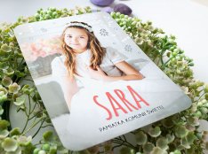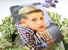Karteczka ze zdjęciem, którą można dołączyć do słodkich upominków lub jako pocztówkę pozostawić przy miejscu przy stole podczas przyjęcia.