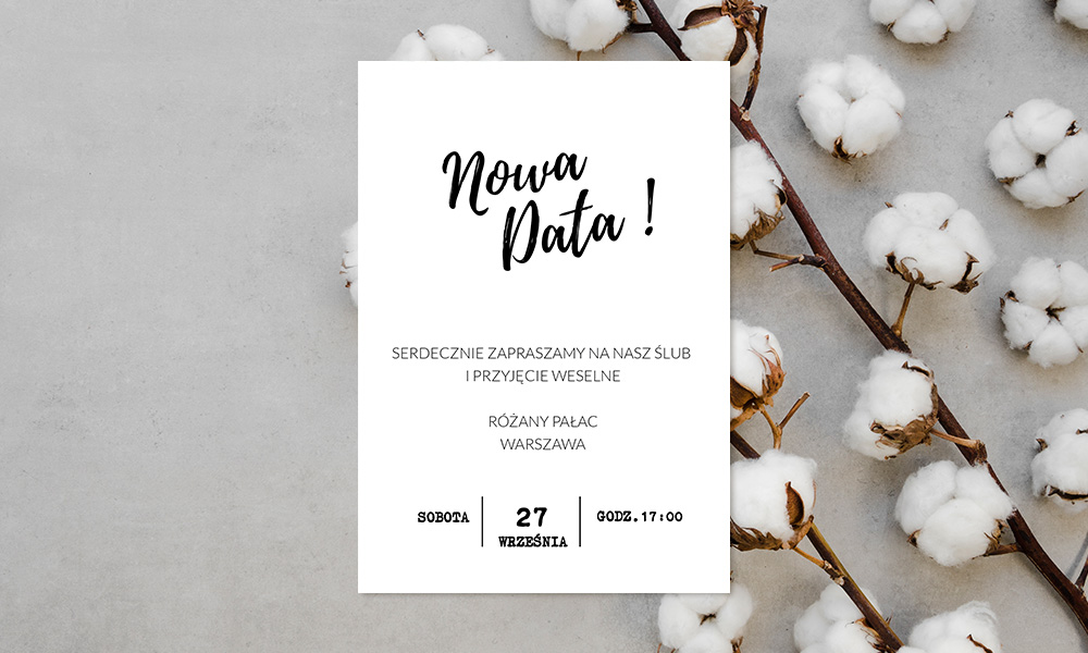Karta Change the Date- to zawiadomienie o zmianie daty Waszego ślubu,
