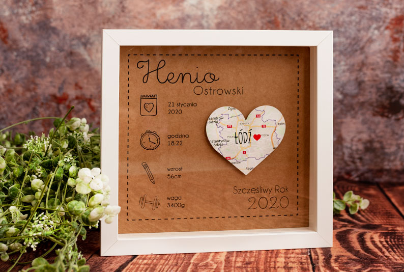 - mapka z sercem z dowolnie podanym miejscem urodzenia