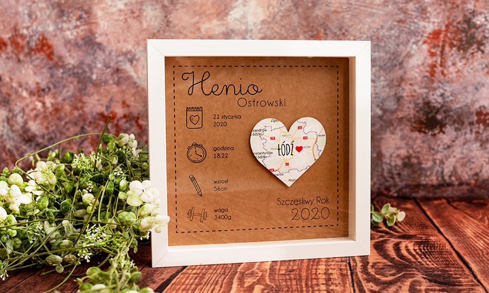 Metryczka w prostej oprawie doskonale sprawdzi się w każdym wnętrzu.