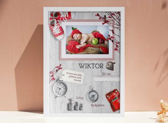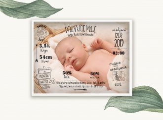 Metryczka urodzinowa w nowoczesnej stylistyce.
