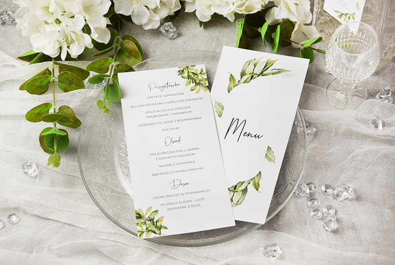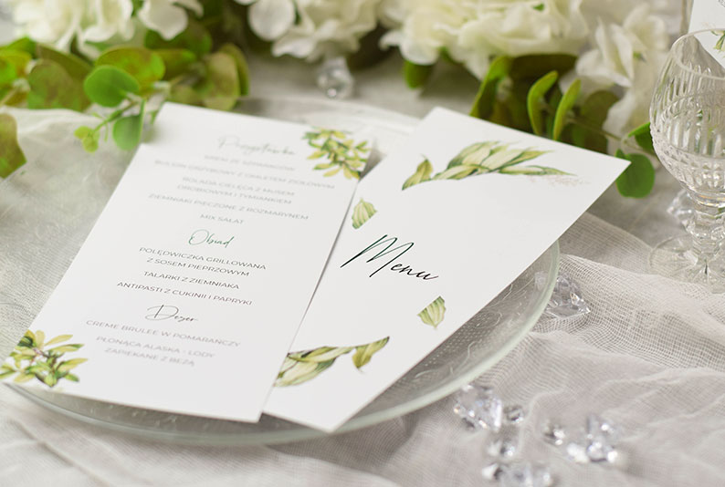 Dzięki kartom menu Goście będą mogli zapoznać się nie tylko ze spisem serwowanych potraw, ale również z przebiegiem wesela.