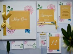Motyw przewodni zaproszenia można wykorzystać do stworzenia pełnej papeterii ślubnej.