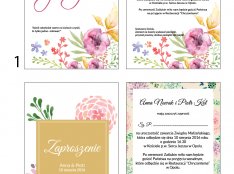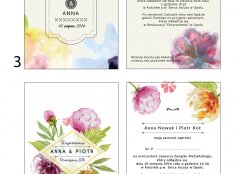 Kolorystyka i grafika zaproszeń na okładce jaki i w środku zaproszenia jest niezmienna oprócz elementów spersonalizowanych.