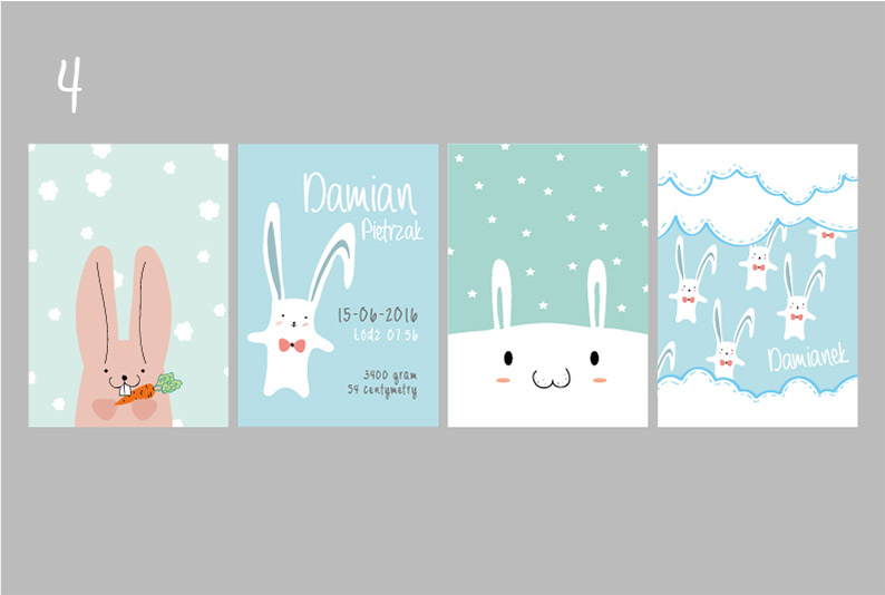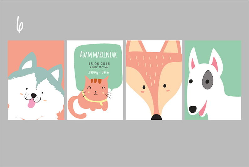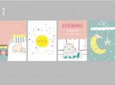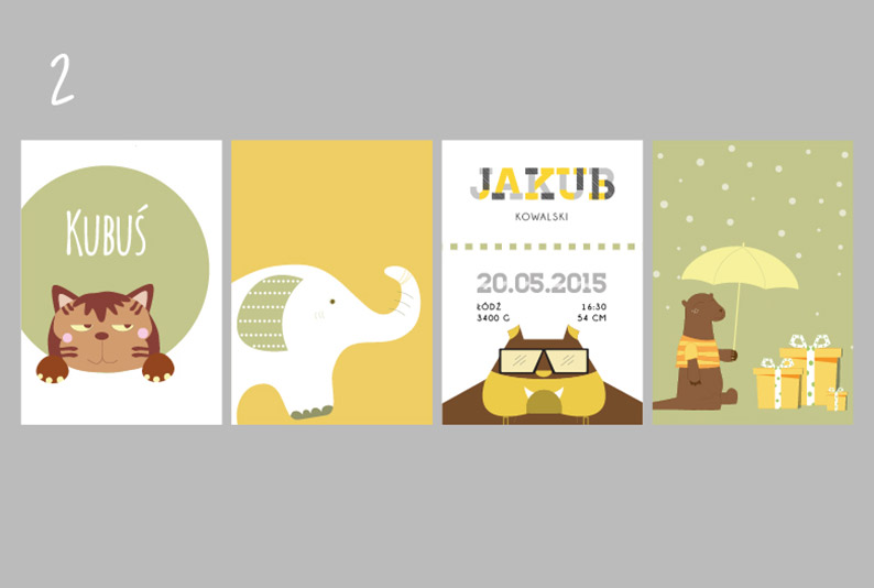 Plakaty wraz z metryczką, w tej samej stylistyce i gamie kolorystycznej.
