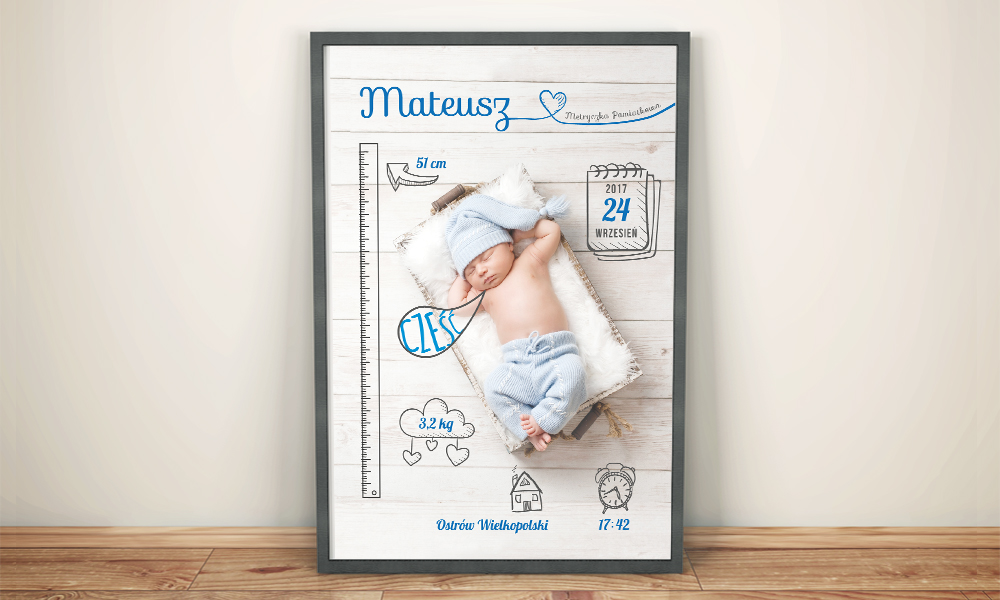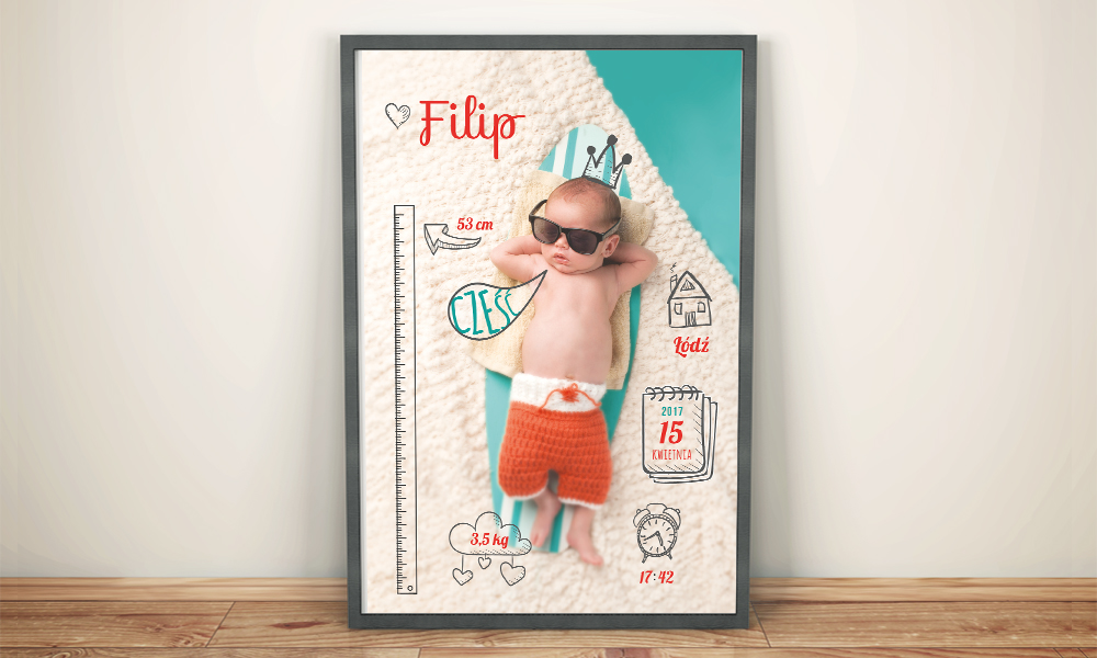 Prześłij zdjęcie Twojego dziecka, dane do metryczki a my stworzymy personalizowany plakat.