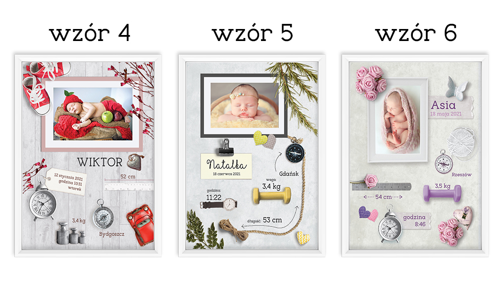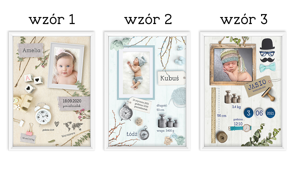 Nowoczesny styl; ciekawa grafika i lekka forma to cechy naszej metryczki ze zdjęciem.